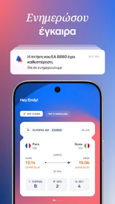 Με την AirHelp, παρακολουθείτε ζωντανά τις πτήσεις σας και λαμβάνετε άμεσες ενημερώσεις. Απολαύστε ένα ξέγνοιαστο ταξίδι, γνωρίζοντας ότι έχετε πάντα την υποστήριξη και τις πληροφορίες που χρειάζεστε για κάθε σας πτήση. Η AirHelp είναι ο ιδανικός σας σύντροφος.