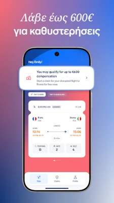 Όταν οι πτήσεις δεν κυλούν ομαλά, η AirHelp σας καλύπτει. Αν αντιμετωπίσετε καθυστέρηση, ακύρωση ή υπεράριθμη κράτηση, η εφαρμογή σας καθοδηγεί στην απλοποιημένη διαδικασία διεκδίκησης της αποζημίωσης που ενδέχεται να δικαιούστε, έως και 600€. Η AirHelp αναλαμβάνει τη γραφειοκρατία, απελευθερώνοντάς σας από το άγχος. Για ένα επίπεδο ασφάλειας πέρα από τα συνηθισμένα, η αναβάθμιση σε AirHelp+ προσφέρει ολοκληρωμένη ταξιδιωτική ασφάλιση, συμπεριλαμβανομένης προστασίας αποσκευών, αποζημίωσης διαταραχών και πρόσβασης σε ειδικά σαλόνια αεροδρομίων σε περίπτωση μακράς αναμονής, εξασφαλίζοντας 24/7 υποστήριξη πελατών για την απόλυτη ηρεμία σας.